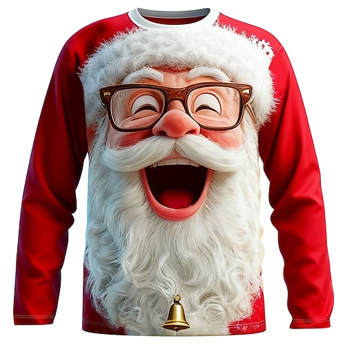Weihnachten Herren Weihnachtsmann 3D Lustig T Shirt Langarm T-Shirt 3D-Druck Rundhalsausschnitt Hemd Mode Basic 3D Straße Lässig Täglich Schwarz Rote Rot 2 Sommer Frühling Bekleidung S M L XL XXL XXXL
