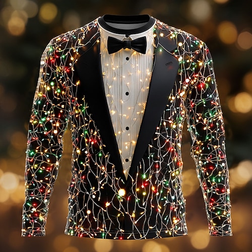 Natale Per uomo Costume di Natale Smoking Maglietta Manica Lunga maglietta Stampa 3D Girocollo Camicia Moda Essenziale 3D Streetwear Casuale Quotidiano Nero 1 Nero 3 Nero 2 Estate Primavera