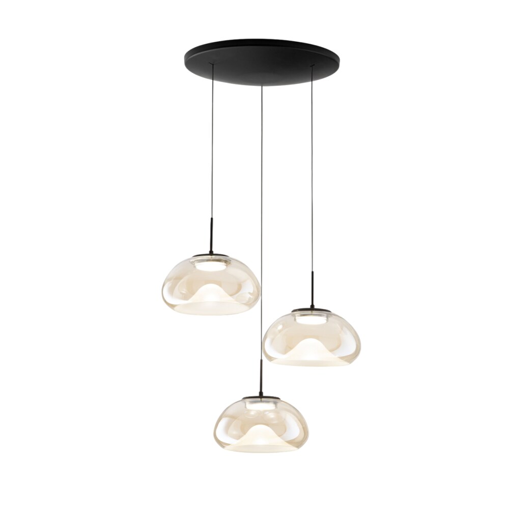 Brena - Fabas Luce 3-flammige runde Pendelleuchte - 30W dimmbare LED - Cognacfarbene runde Deckenrosette d.35cm