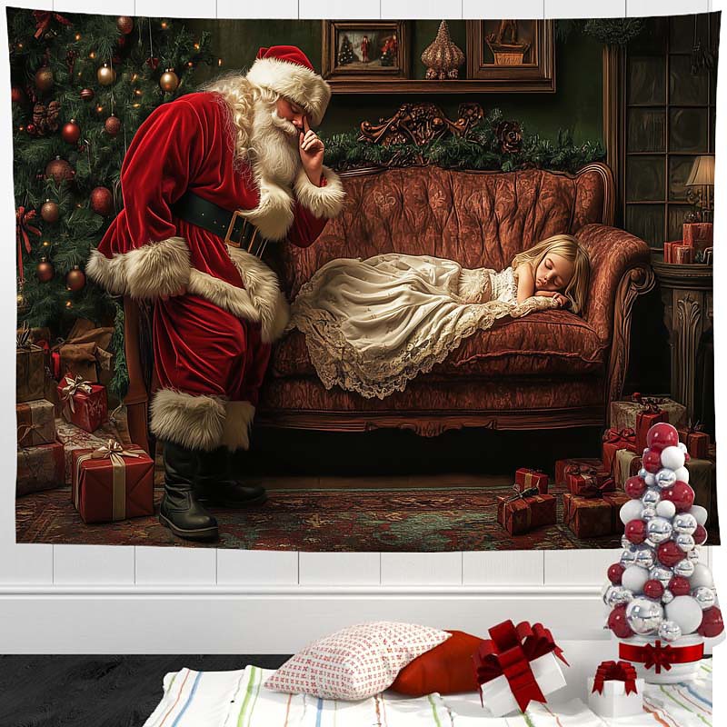 Christmas Tapestry – Festive Holiday Wall Hanging, Santa Snowflake Christmas Tree Winter Wonderland Decorative Tapestry for Home Bedroom Living Room Decoration