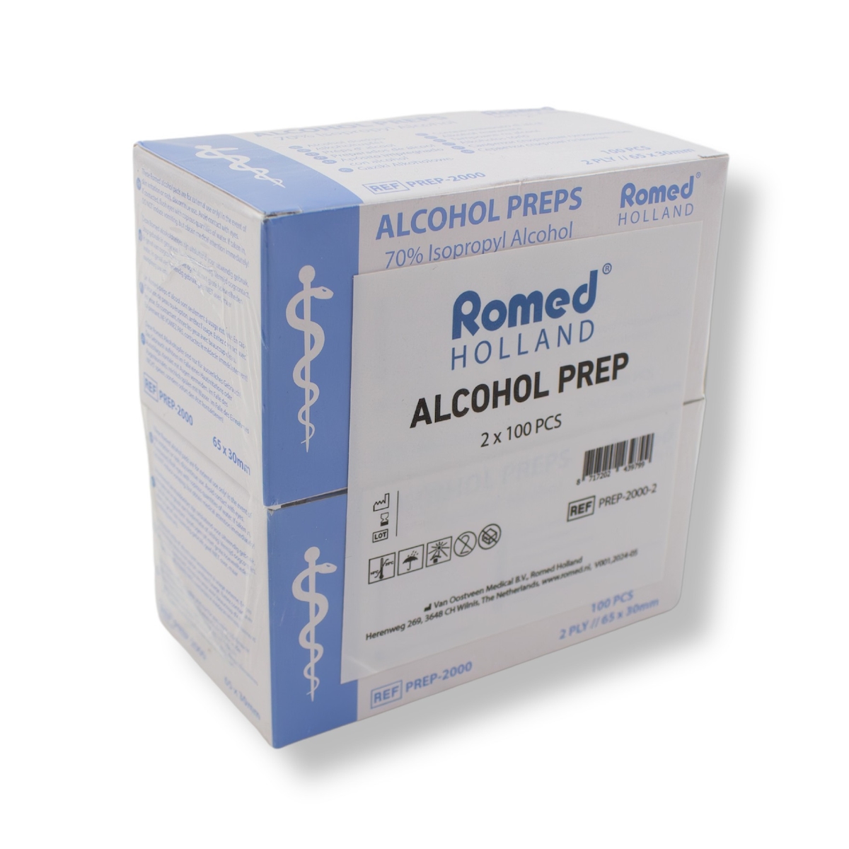 Romed Alkoholtupfer 65 x 30 mm, 2-lagig, Spar-Set 2 x 100 Stück, hygienisch eingesiegelt