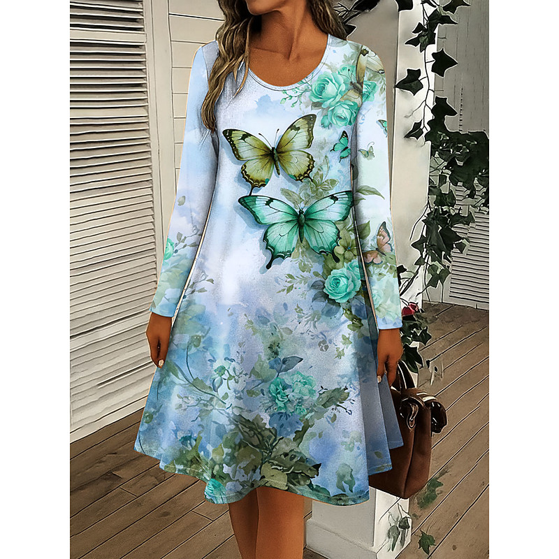Women's Mini Dress Crew Neck Long Sleeve Casual Dress T Shirt Dress Tee Dress A Line Dress Casual Regular Fit Floral Graphic Butterfly Pink Blue Orange Green Spring Fall Winter