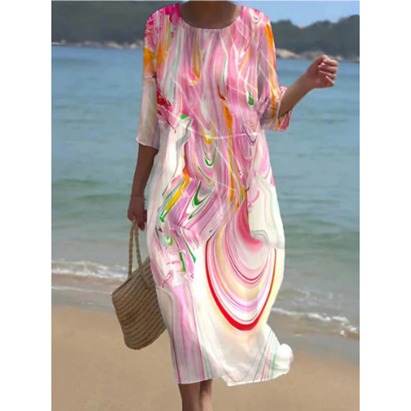 Women's Midi Dress Casual Dress Print Dress Fashion Modern Daily Beach Weekend Regular Fit Floral 3/4 Length Sleeve Crew Neck White Pink Green Spring Fall Autumn