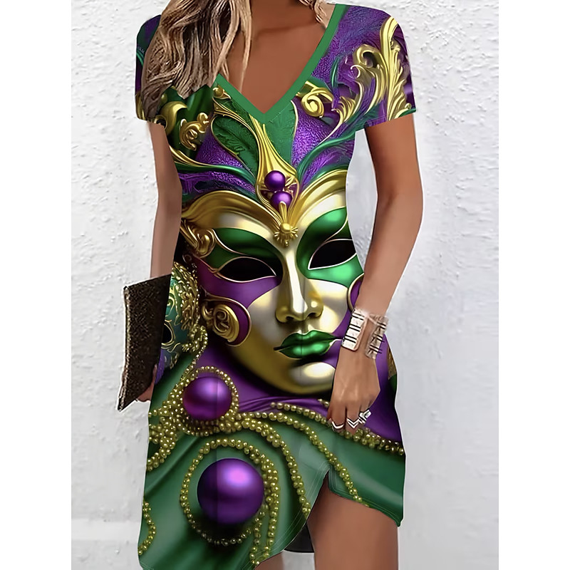 Women's Mini Dress T Shirt Dress Tee Dress A Line Dress Summer Dress Casual Daily Date Weekend Regular Fit Tribal Short Sleeve V Neck Green Summer Spring