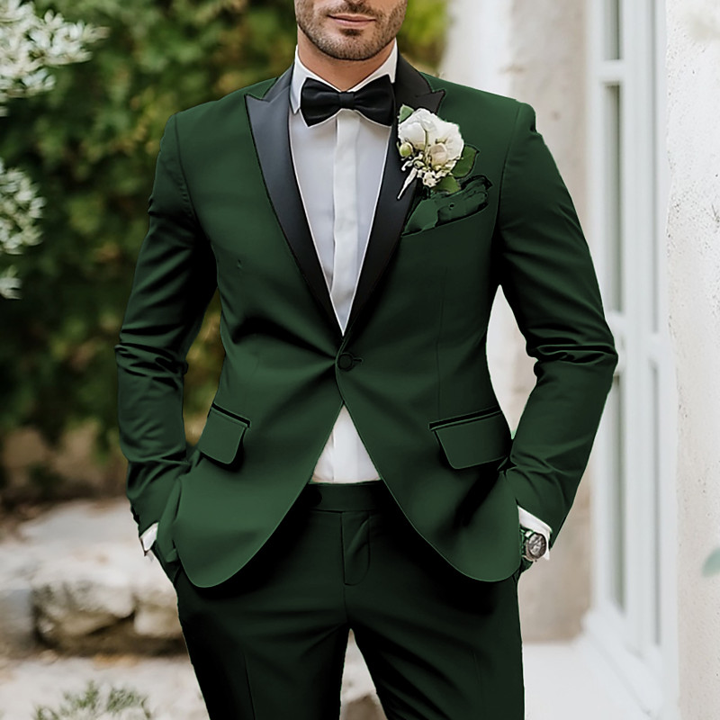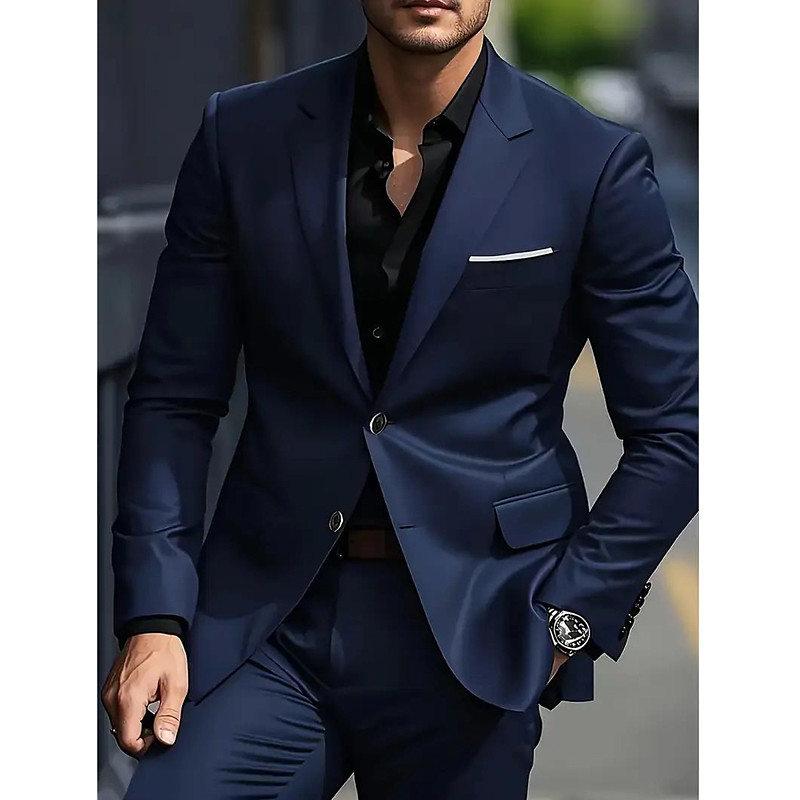 Men's Wedding Party Business Suits Notch Lapel Black Dark Blue Formal Solid Colored Tailored Fit 2 Piece Single Breasted Two-buttons