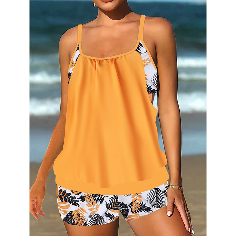 Women's Tankini 2 Piece Swimsuit Leopard Shorts Tummy Control High Waist Slim Backless Vacation Beach Wear Leaves Scoop Neck Sleeveless Bathing Suits