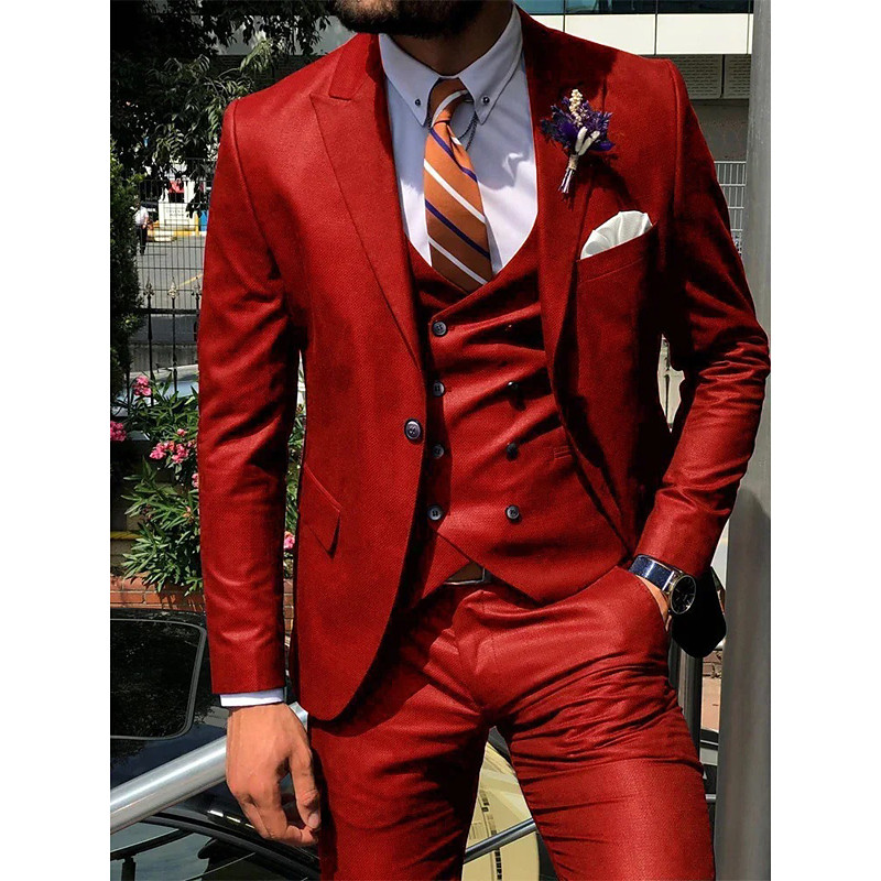 Men's Wedding Business Tweed Suits Notch Lapel Black Burgundy Daily Business Solid Colored Standard Fit 2 Piece Single Breasted Two-buttons
