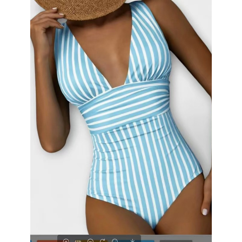 Women's One Piece Swimsuit Slimming Colorblock Monokini Tummy Control High Waist Slim Backless Vacation Beach Wear Striped V Neck Sleeveless Bathing Suits