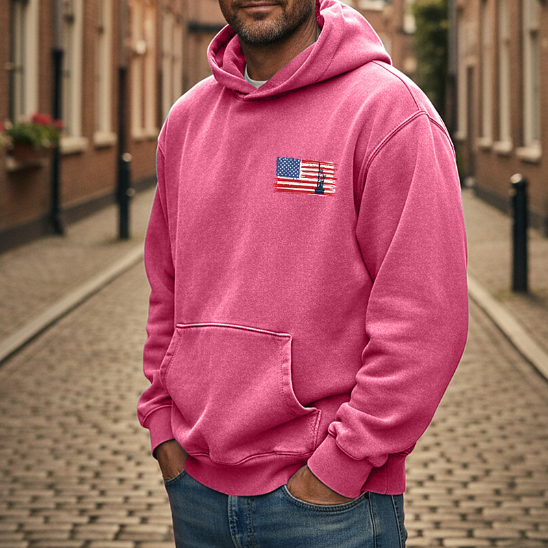 Men's Hoodie Distressed Hoodie Black Yellow Pink Red Blue Hooded American Flag Drawstring Pocket Front Pocket Sports Outdoor Daily Holiday Cotton Streetwear Basic Casual Spring Fall Clothing