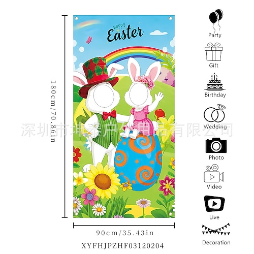 Banner fotografico con ritaglio del viso del coniglietto pasquale, decorazione festiva per porte e feste, perfetto per esposizioni festive e decorazioni per feste pasquali all'aperto/al chiuso