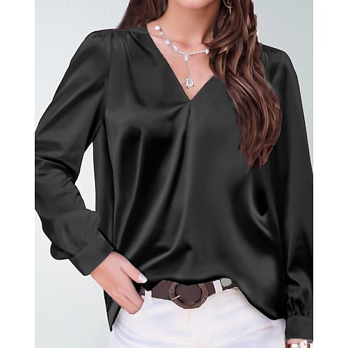Per donna Camicia Elegant Raso/Satin Blusa Semplice Vintage Elegante Manica Lunga Scollo a V Top Regolari Ferie Uscire Arricciato Nero Bianco Vino Blu Reale Verde Estate Primavera
