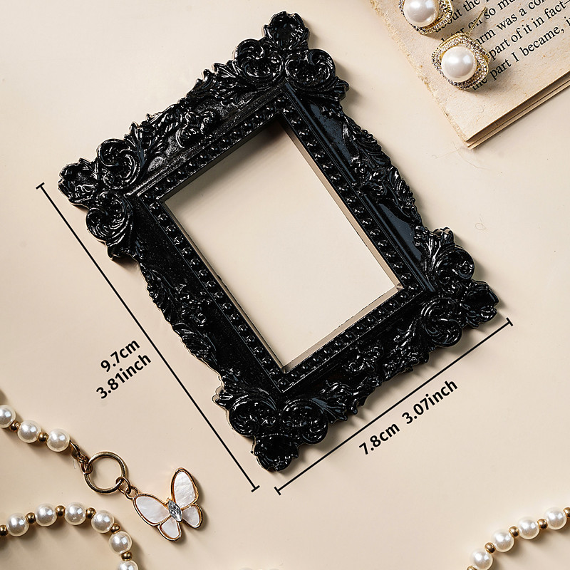 1PC European-style Resin Material Three-dimensional Patterned Black Prop Frame Decoration DIY Decorative Item Suitable for Photography Shooting Props Miniature House Decoration Props