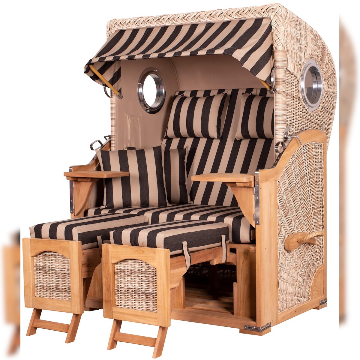 Mr. Deko Strandkorb Komplettset - bene living - Ammersee Teak - PE shell - Modell 581 - inkl. Liftersystem