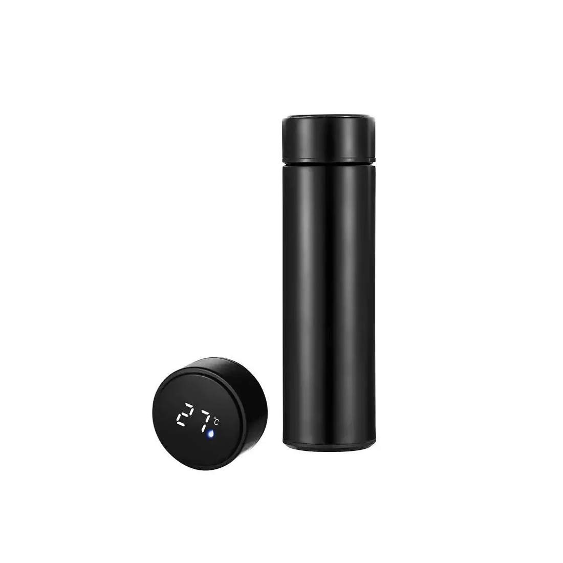 Herzberg rustfrit stål termovakuumflaske med smart temperaturdisplay - 500 ml sort