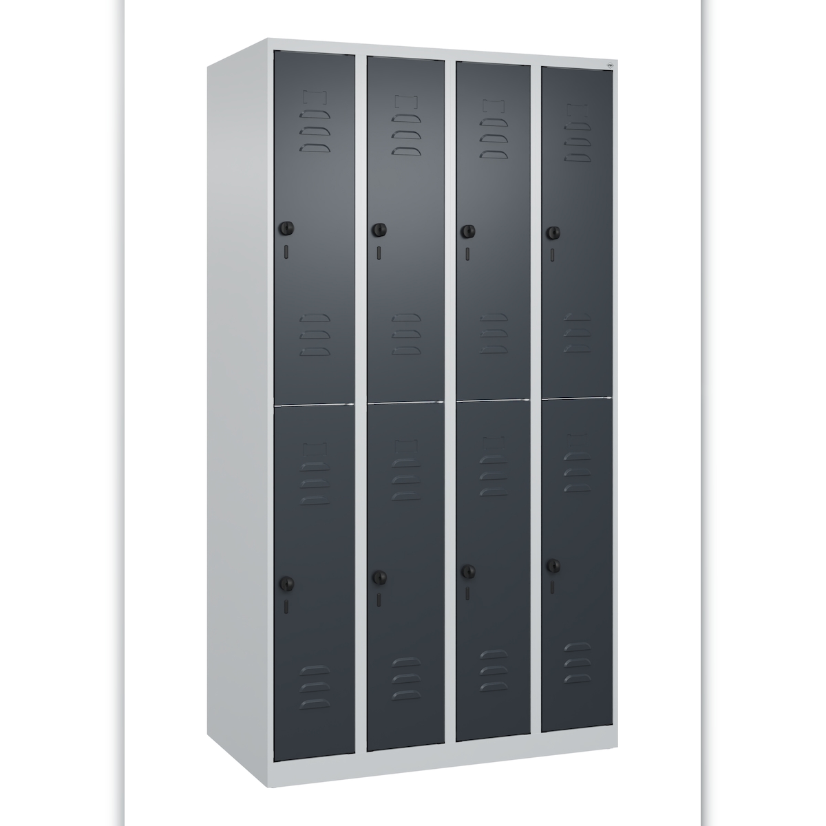 C+P Spind Classic PLUS, 8 Abteile, HxBxT 185x100x50cm, Sicherheitsdrehriegel, Hellgrau/Anthrazit von PROREGAL