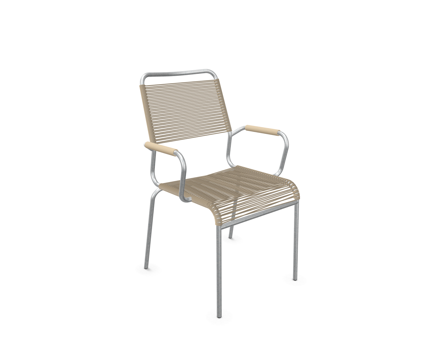 Schaffner Spaghetti-Stuhl Rigi mit Armlehnen Feuerverzinkt Braun | Schubiger Möbel