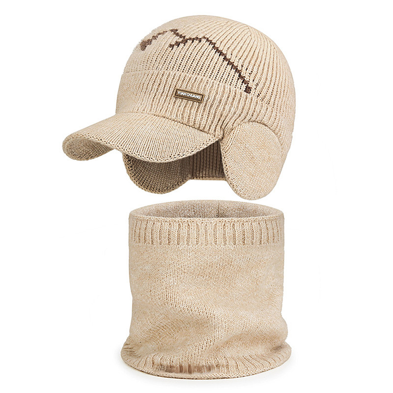 Unisex Acrylic Knit Hat Scarf Set, Adjustable Ear Flaps, Multiple Colors, Perfect for Winter Sports Outdoor Activities