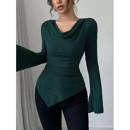 Per donna Blusa Tinta unica Elegante Essenziale Casual Manica Lunga Scollo a Cascata Top Regolari Quotidiano Arricciato Nero Vino Verde Cachi Grigio Primavera Autunno Inverno