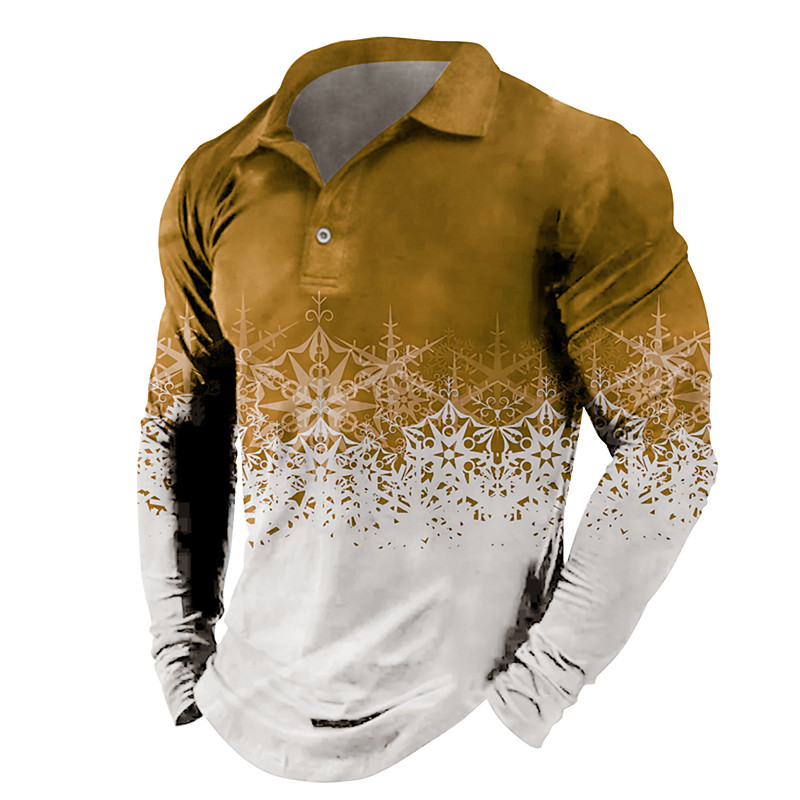 Christmas Men's Christmas Scene 3D Polo Golf Graphic Prints Snowflake Turndown Yellow Wine Blue Green Gray 3D Print Street Casual Long Sleeve Print Button-Down Clothing Apparel Fashion Designer