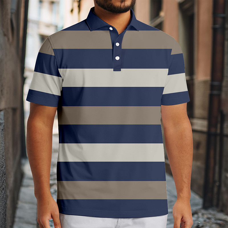 Men's Horizontal Stripes Rugby Polo Short Sleeve Polo Shirts Collared Shirts Casual School Outdoor Athleisure Daily Wear Buttons 3D Print Summer Blue Green