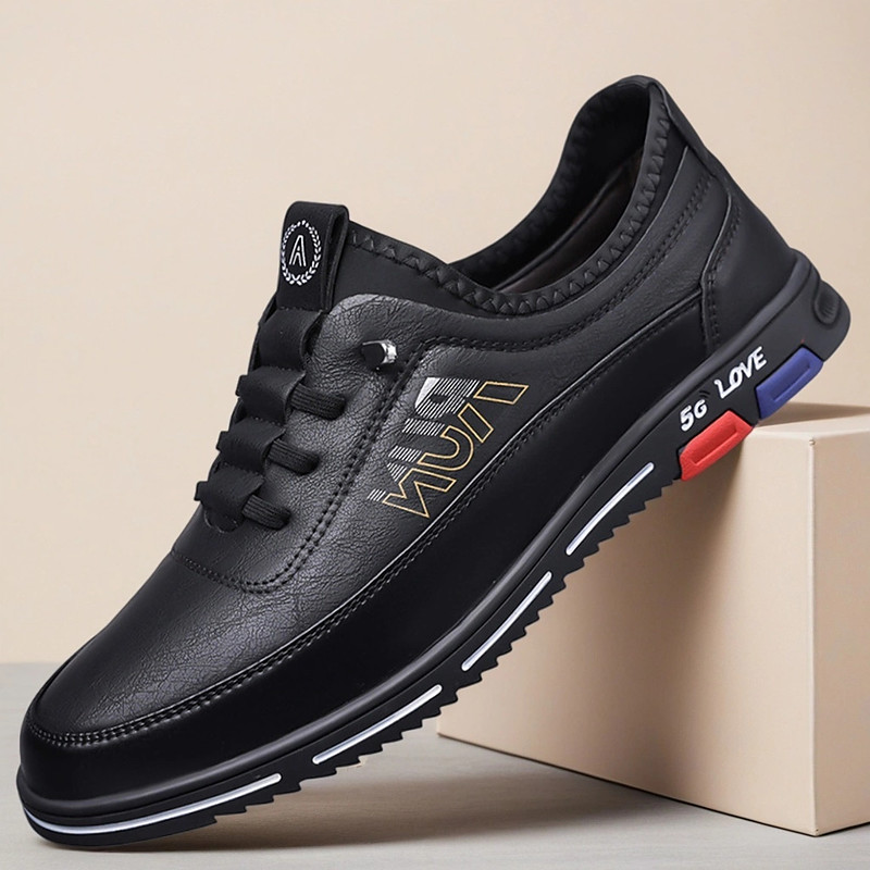 Men's Brown Faux Leather Comfort Sneakers – Cushioned Non-Slip Outdoor Shoes for Walking, Work and Everyday Wear