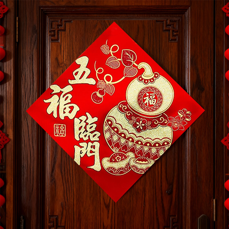 1pc 13.7in Velvet Chinese New Year Self-Adhesive Fu Ornament,2026 Spring Festival Fu Velvet Stickers, Year of The Horse Lunar New Year Decorations for Home Door Window Cabinet,Wu Fu Lin Men Style