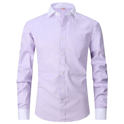 Per uomo Camicia Camicie Camicia con bottoni Liscio Matrimonio Feste Rosa Blu Viola chiaro Manica lunga Bavero Primavera Autunno Abbigliamento Tasca frontale