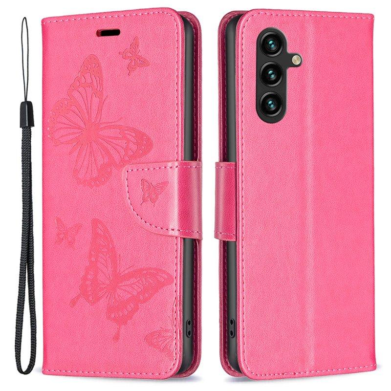 Handy Hülle Handyhüllen Für Samsung Galaxy S26 Ultra Plus S24 S23 S22 S21 FE S21 Ultra Plus S20 A54 A73 A53 Brieftaschenhülle Flip Mit Handgelenkschlaufe Ständer Baum Schmetterling Blume