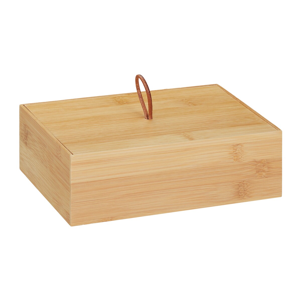 Relaxdays Aufbewahrungsbox mit Deckel, Bambus Kasten, Deko, für Utensilien, Allzweckkiste, klein, HBT: 7x22x15 cm, natur