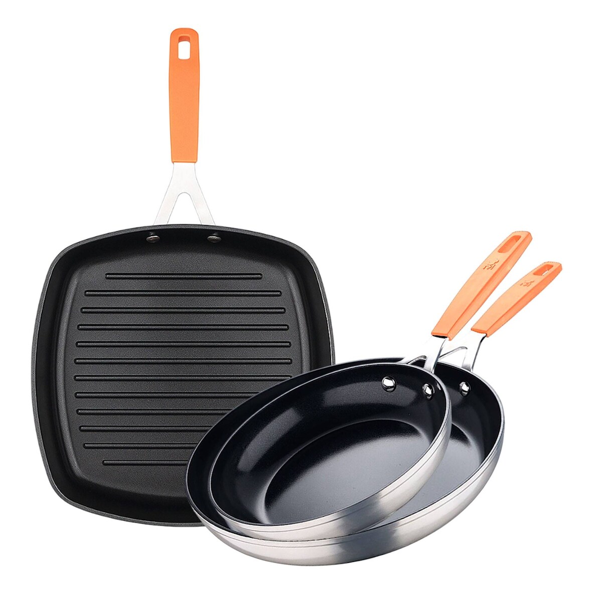 San Ignacio Compact - Set aus 2 Bratpfannen Ø16/Ø28cm und einer quadratischen Bratform 28x28cm aus geschmiedetem Aluminium, geeignet für Induktion