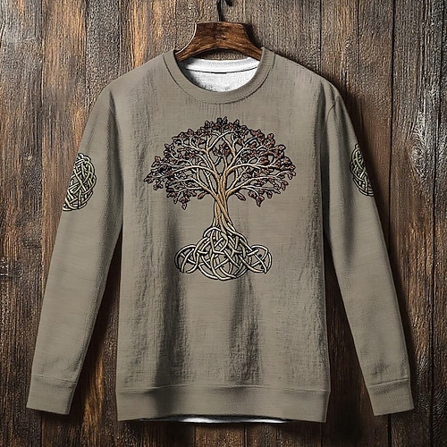 Per uomo Maglia Nero Blu Grigio Girocollo Albero della vita Yggdrasil Nodo celtico Stampato Casuale Quotidiano Ferie Vintage Vichingo Autunno Inverno Abbigliamento Felpe con cappuccio Felpe