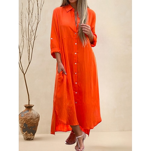 Per donna Abito maxi Abito Camicia Abiti in cotone e lino Vestito Casual Abito estivo in cotone Moda Essenziale Moderno Quotidiano All'aperto Vacanza Vestibilità comoda Semplice Manica Lunga Colletto