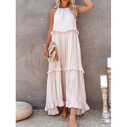 Per donna Abito lungo maxi Vestito Casual Abito Estivo Elegante Moda Moderno All'aperto Vacanza Uscire Vestibilità comoda Semplice Senza Maniche Girocollo Nero Giallo Borgogna Marrone Estate Primavera