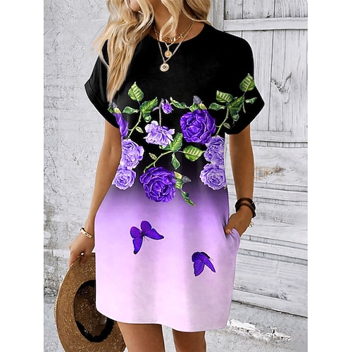 Per donna Mini Abito Abito a Tubino Vestito T-Shirt Abito Estivo Casual Quotidiano Ferie Data Vestibilità comoda Floreale Grafico Manica Corta Girocollo Blu Rosso Viola Verde Estate Primavera