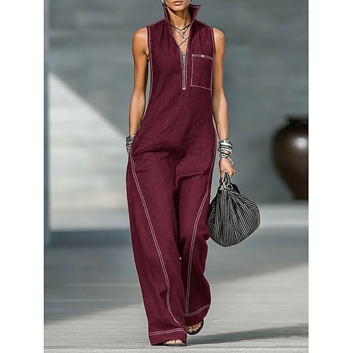 Per donna Normale Tuta Attivo Tinta unica Senza Maniche Gamba larga Colletto a Camicia Cerniera Tasca Quotidiano Vacanza Vestibilità comoda Blu Nero Giallo Estate