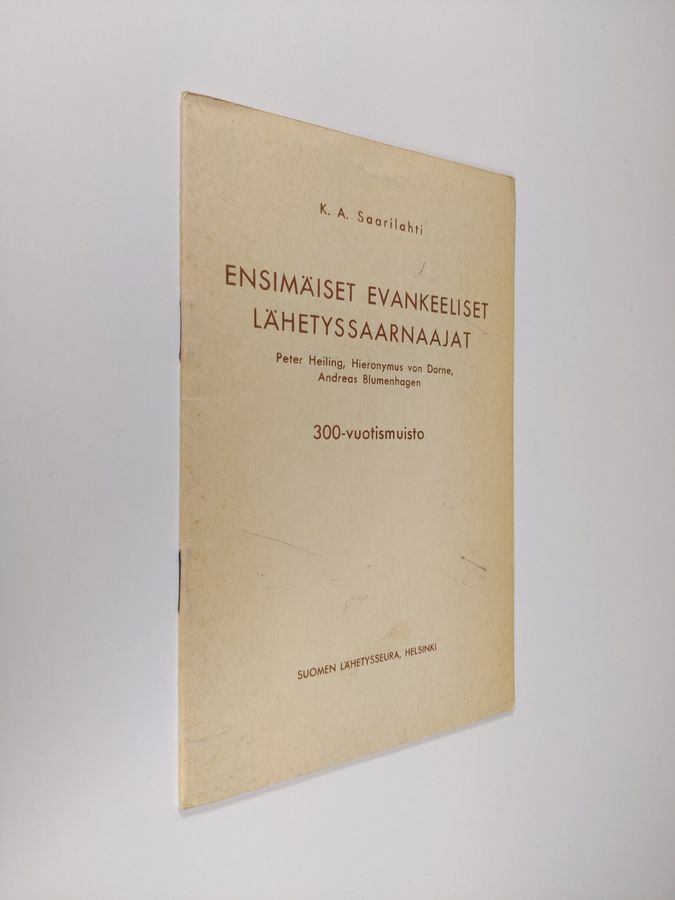 K. A. Saarilahti : Ensimmäiset evankeeliset lähetyssaarnaajat Peter Heiling, Hieronymys von Dorne, Andreas Blumenhagen : 300-vuotismuisto