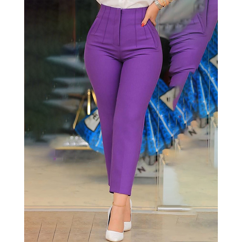 Women's Dress Pants Fashion Full Length Natural Plain Elastic Waist Comfortable Work Business claret Depression Green Apricot Black Fall Regular Fit