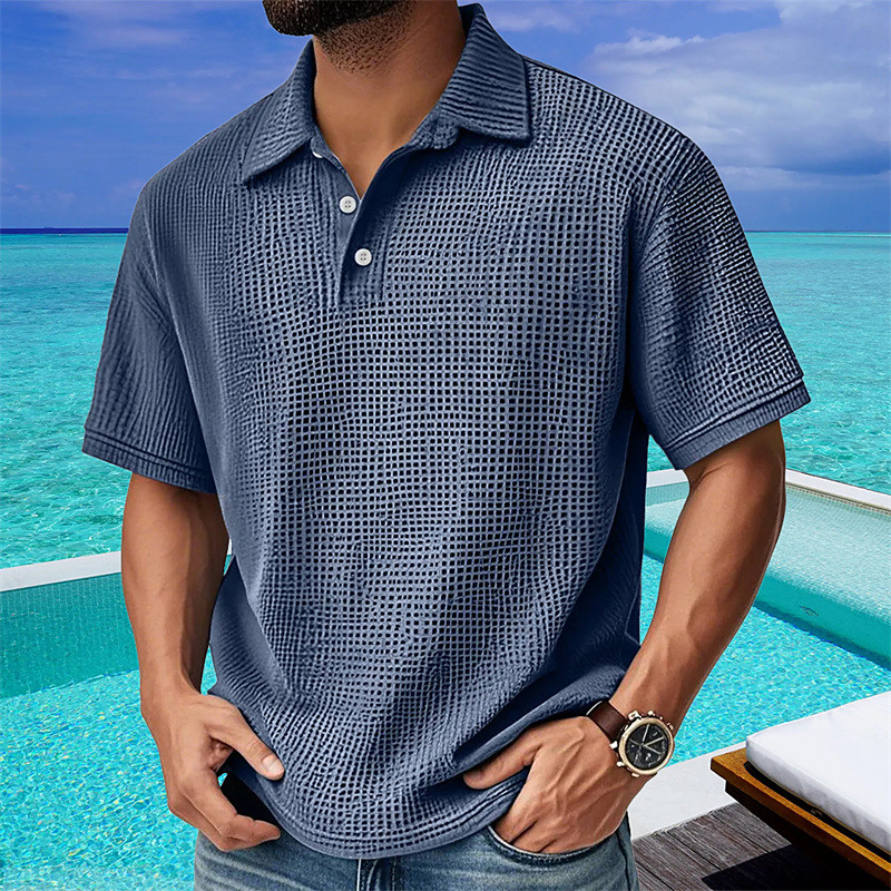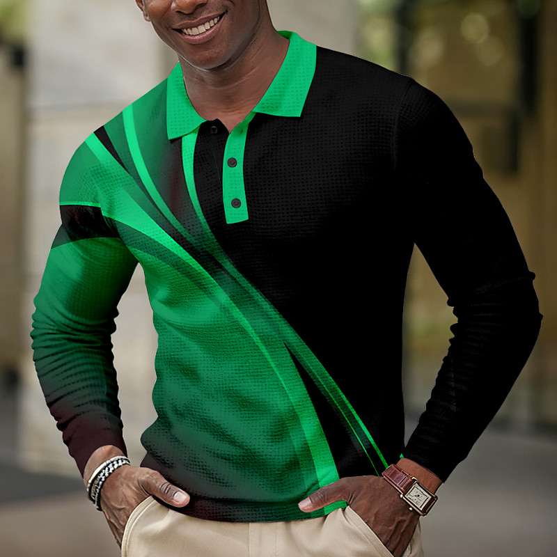 Men's Geometic Line Waffle Polo Shirts Long Sleeve Polo Shirts Collared Shirts Business Casual Business Wear to work Daily Wear Buttons Spring Fall Winter Blue Purple Green