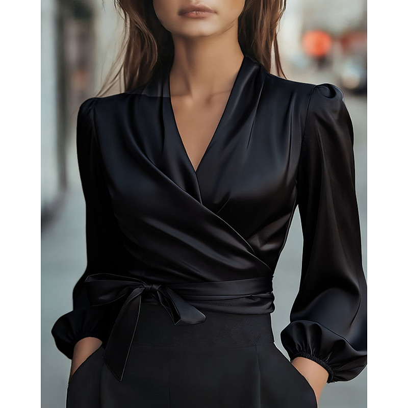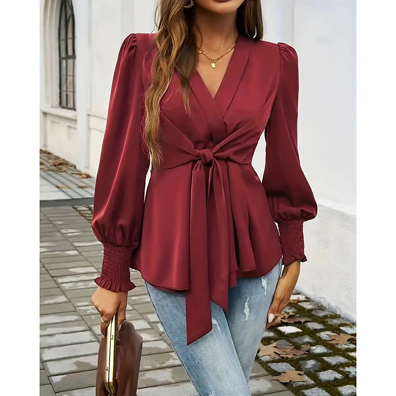 Women's Blouse Dressy Tops Solid Color Plain Elegant Vintage Daily Long Sleeve V Neck Regular Tops Work Daily Holiday Lace up Ruched Tunic Black Pink Wine Green Fall Winter