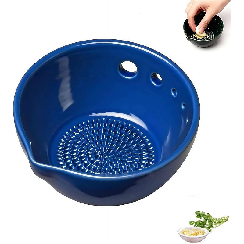Handmade Garlic Grater Herb Bowl, 2 in 1 Pottery Herb Stripper Bowl with 5 Holes, Multi-Functional Herbs Stripping Bowls with Built-in Garlic Grater for Home Kitchen Preparation
