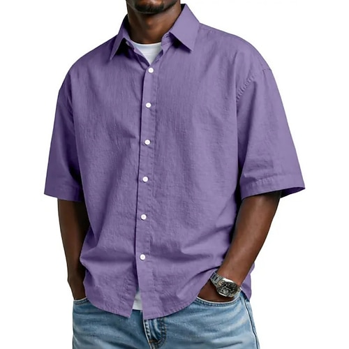 Per uomo Camicia Camicia button-down Camicia 100% cotone lavaggio acido Nero Bianco Rosa Blu marino scuro Blu reale Manica Corta Semplice Bavero Quotidiano All'aperto Bottoni Abbigliamento Streetwear