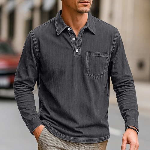 Per uomo Polo Polo da Golf Streetwear Affari Classico Manica Lunga Vintage Essenziale Tinta unica Semplice Tasca Autunno Inverno Interstagionale Vestibilità comoda Nero Rosa Blu marino Blu Viola