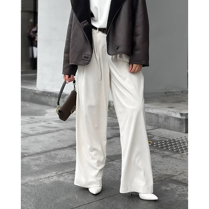 Women's Wide Leg Corduroy Pants Slacks Streetwear Casual Full Length Natural Plain Elastic Waist Comfortable Holiday Daily Wear Weekend Sillver Gray Black Dark Pink Red Fall Regular Fit