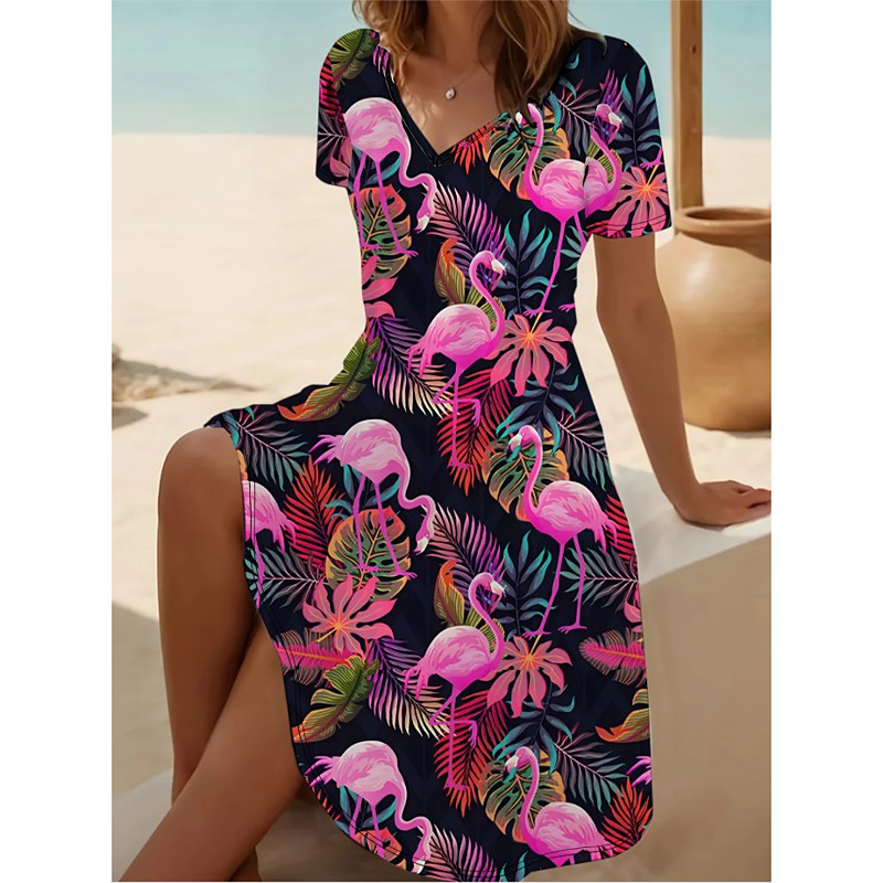Women's Mini Dress T Shirt Dress Tee Dress A Line Dress Summer Dress Vacation Casual Daily Holiday Date Regular Fit Floral Graphic Animal Short Sleeve V Neck Yellow Red Blue Light Purple Summer Spring