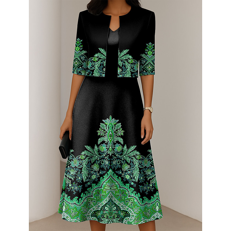 Women's Midi Dress Shift Dress Summer Dress Print Dress Active Fashion Streetwear Outdoor Daily Date Regular Fit Graphic Half Sleeve Split Neck Green Summer Spring