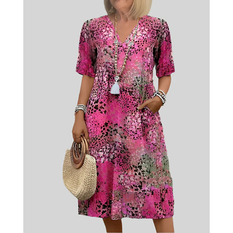 Women's Midi Dress Print Dress Fashion Modern Vacation Going out Regular Fit Graphic Short Sleeve V Neck Red Blue Purple Khaki Spring Fall