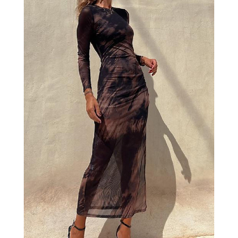 Women's Midi Dress Party Dress Cocktail Dress Sheath Dress Print Dress Modern Party Special Occasion Evening Party Regular Fit Floral Long Sleeve Crew Neck Blue Black Pink Spring Fall