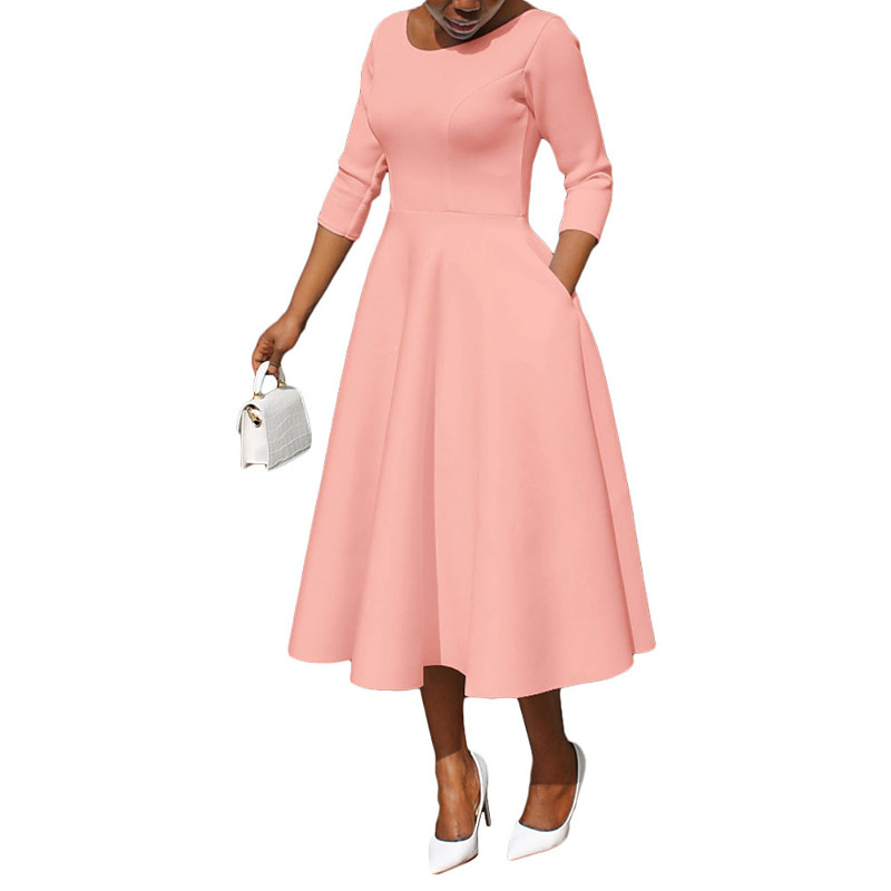 Women's Midi Dress Black Dress Swing Dress Fashion Modern Outdoor Vacation Going out Regular Fit Plain 3/4 Length Sleeve Crew Neck Black White Pink Purple Spring Fall