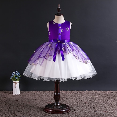Abito da damigella d'onore bambina Ragazze Abito formale Abiti da sposa Feste Matrimonio Formale Adorabile Principessa Bello Patchwork Rete Stella Senza Maniche Girocollo Blu Nero Dai 4 anni in su