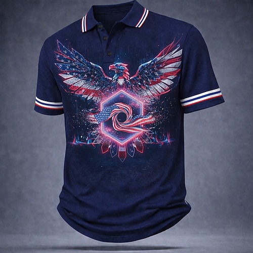 4. Juli 2026 250. Herren Adler Poloshirts Kurzarm Polo-Shirts Hemden mit Kragen Lässig Outdoor Athleisure Knöpfe Frühling Sommer Blau Rote Grau